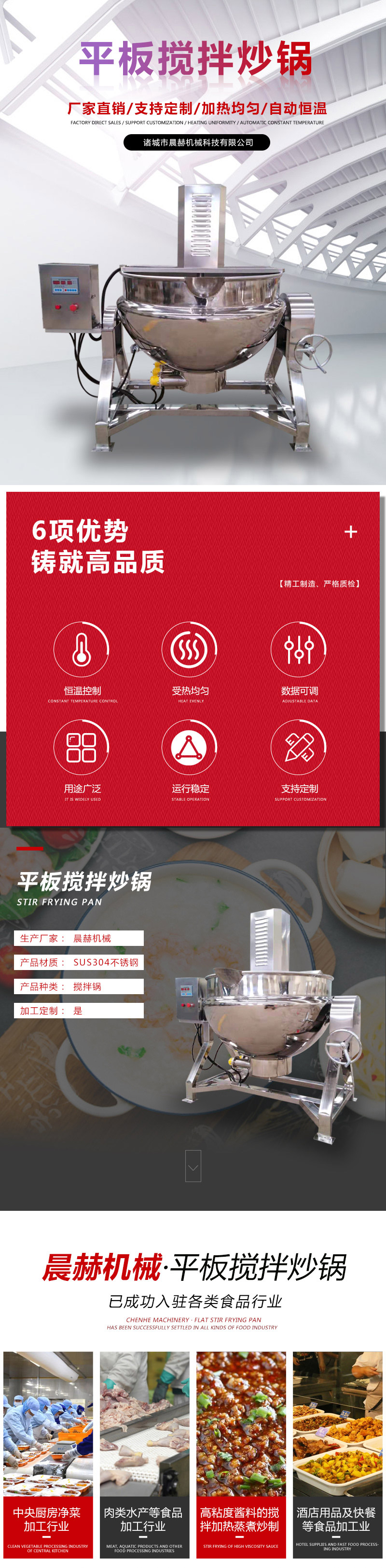 行星炒鍋、攪拌鍋、電磁炒鍋、蒸煮鍋、滾揉機、斬拌機、清洗風(fēng)干流水線等產(chǎn)品